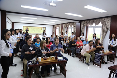 美国培普丹大学访学团在孔子学堂上茶艺课