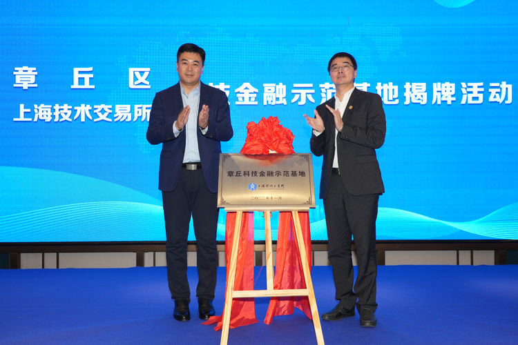 颜明峰、马志勇为章丘科技金融示范基地揭牌。