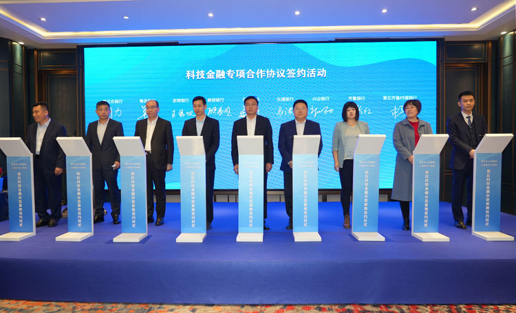 同晟担保公司,交通银行济南分行、邮储银行山东省分行、兴业银行济南分行(省行)、齐鲁银行、青岛银行济南分行(省行)、浙商银行济南分行(省行)、章丘农商行、章丘齐鲁村镇银行签订科技金融专项合作协议。