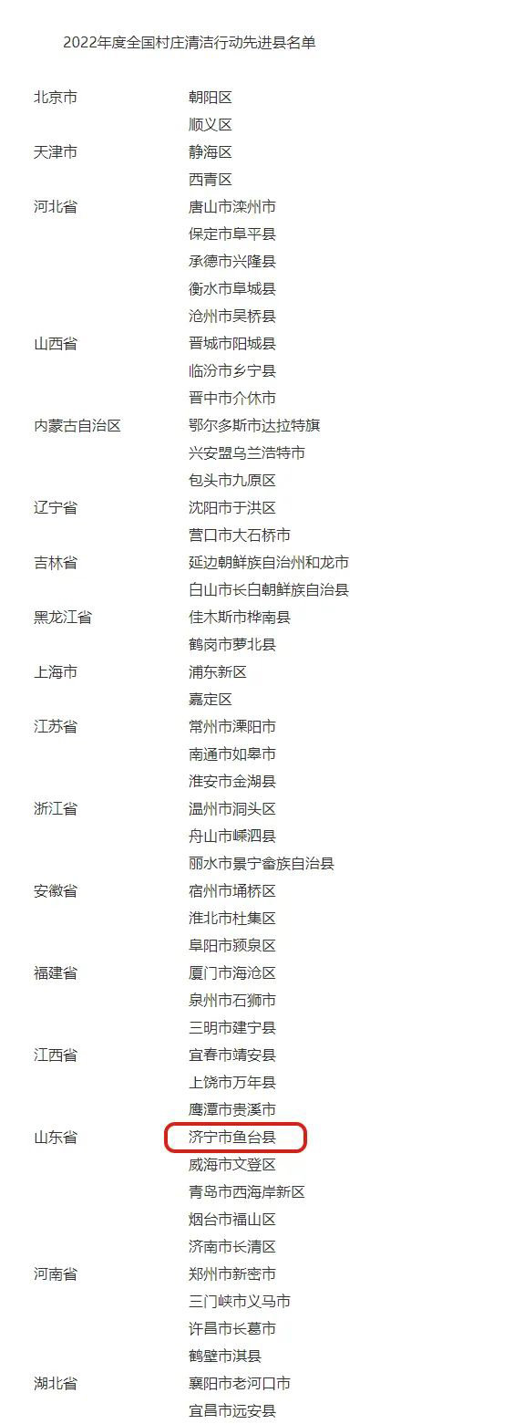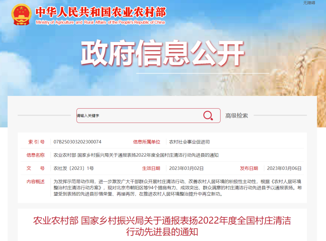 关于通报表扬2022年度全国村庄清洁行动先进县的通知