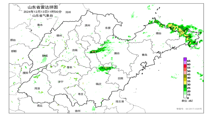 目前,山东这轮雨雪天气基本结束,13日11时左右,降水回波主要位于威海。