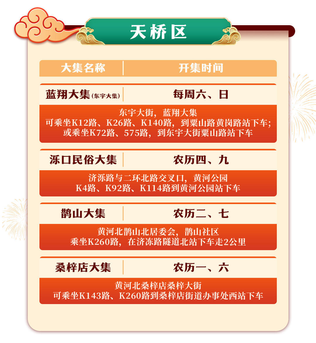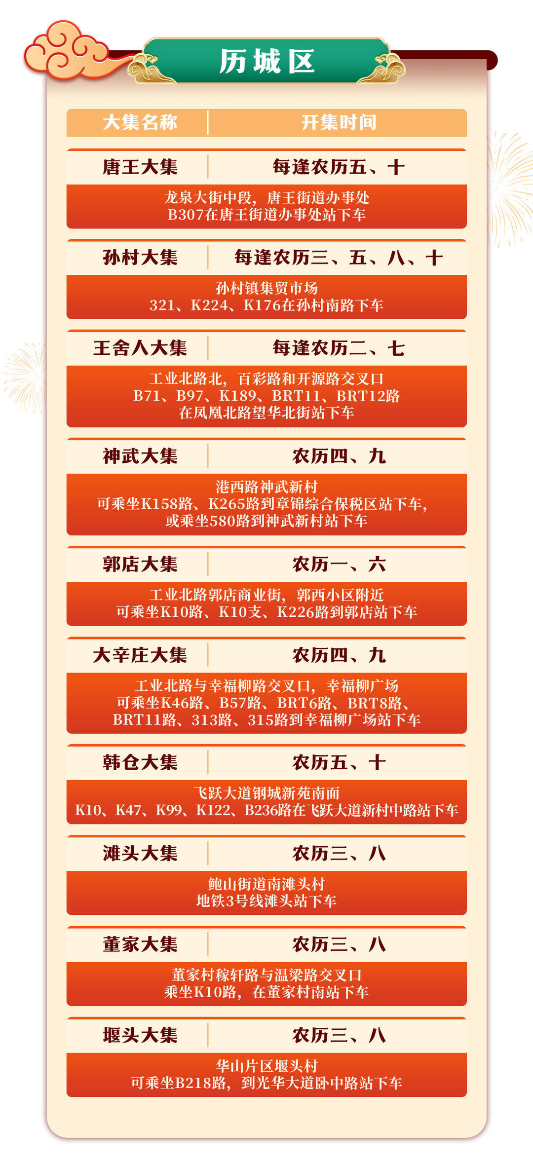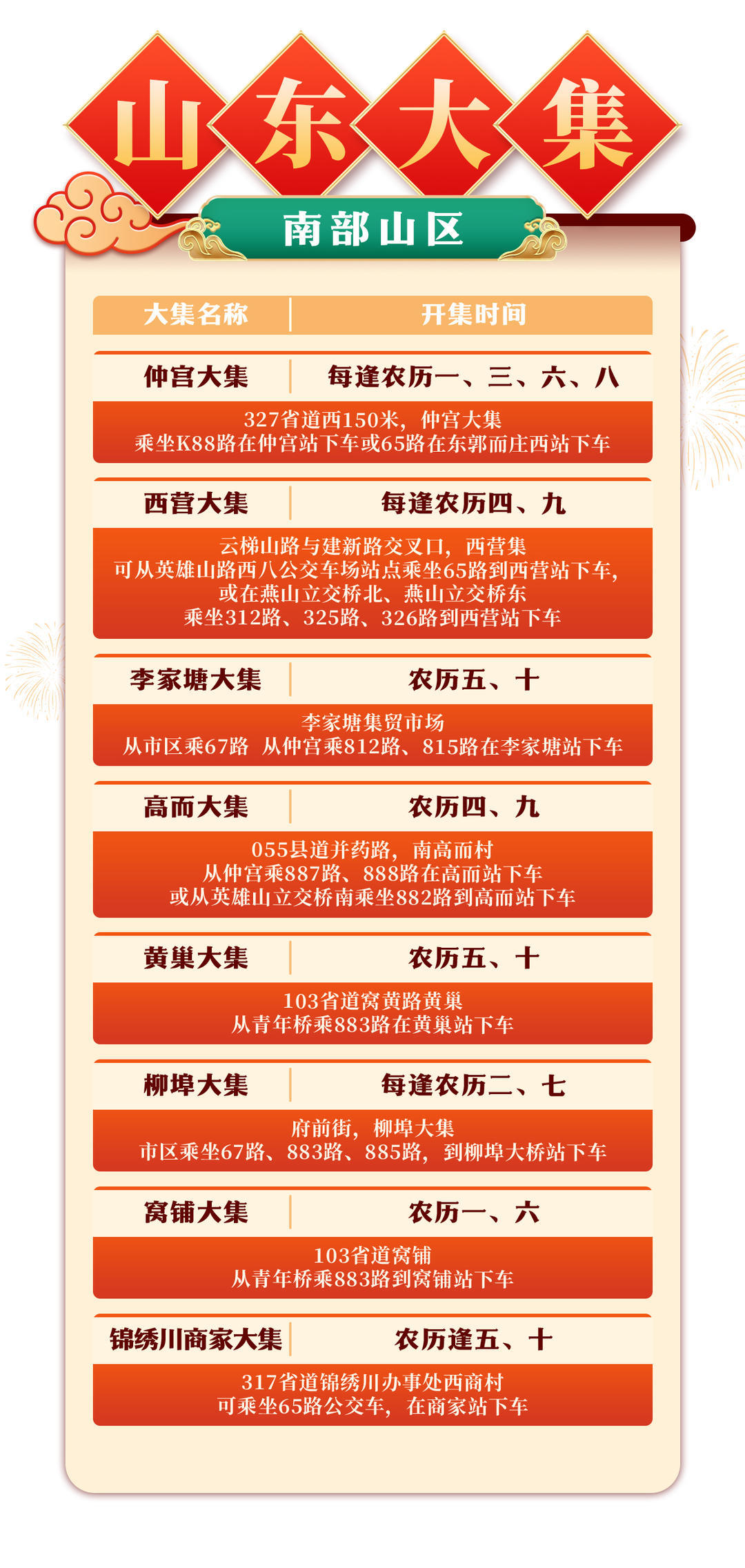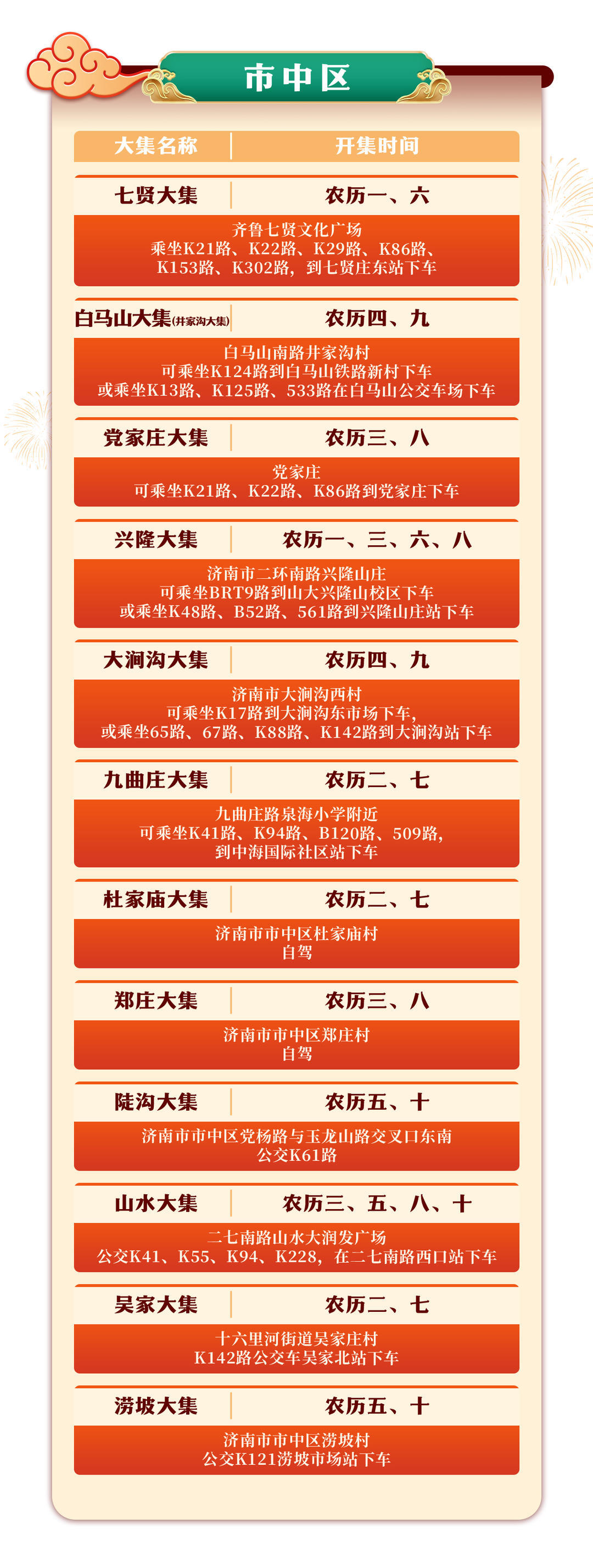 这里有一份超实用的济南市赶集攻略,涵盖多个集市的地址和交通线路,快叫上家人朋友,一起逛集市,备年货,把幸福和年味一起带回家!