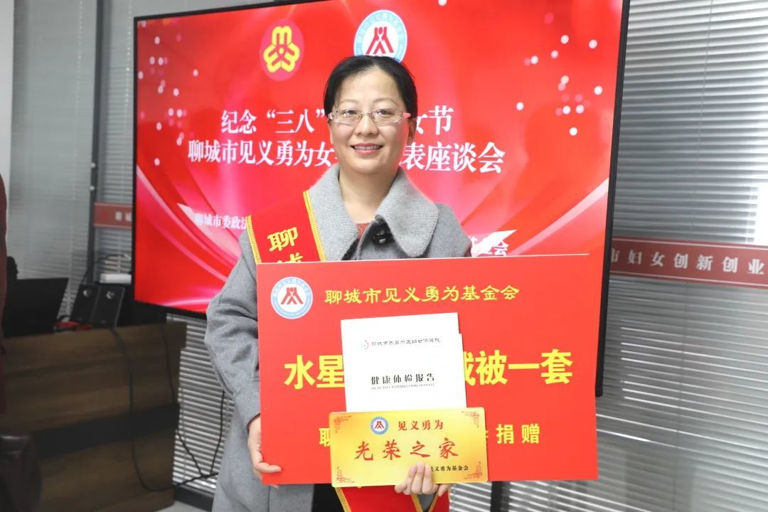 会上,聊城市妇联党组书记、主席丁洁清代表市妇联向女见义勇为英模表示慰问。东昌妇幼党委副书记、院长姚淑霞为女英模们赠送健康体检卡,表达对英雄的关怀与敬意,并表示将发挥医院专业优势,为英模代表提供健康支持。熊佩佩护士长同其他8位女英模荣获“光荣之家”荣誉牌。