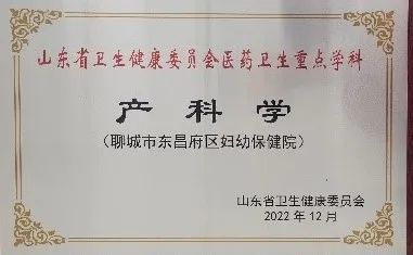孕产保健部先后被评为全国专科助产士临床实践基地、国家级婚前保健特色专科、山东省医药卫生重点学科、山东省孕产期保健特色专科、山东省优生优育中心、聊城市产前诊断中心、聊城市危重孕产妇救治中心、聊城市临床重点专科、聊城市孕产期保健特色专科,建有首批省级示范孕妇学校。
