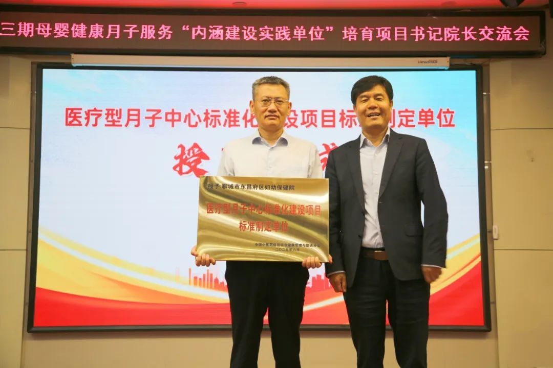 授牌仪式环节上,中国中医药信息学会健康管理与促进分会会长郭学志向东昌府区妇幼保健院党委委员黄风雷授予“医疗型月子中心标准化建设项目标准制定单位”牌匾。这一殊荣不仅是对东昌府区妇幼保健院在母婴健康服务领域突出贡献的高度认可,也标志着该院将在医疗型月子中心标准化建设方面承担起更重要的责任。