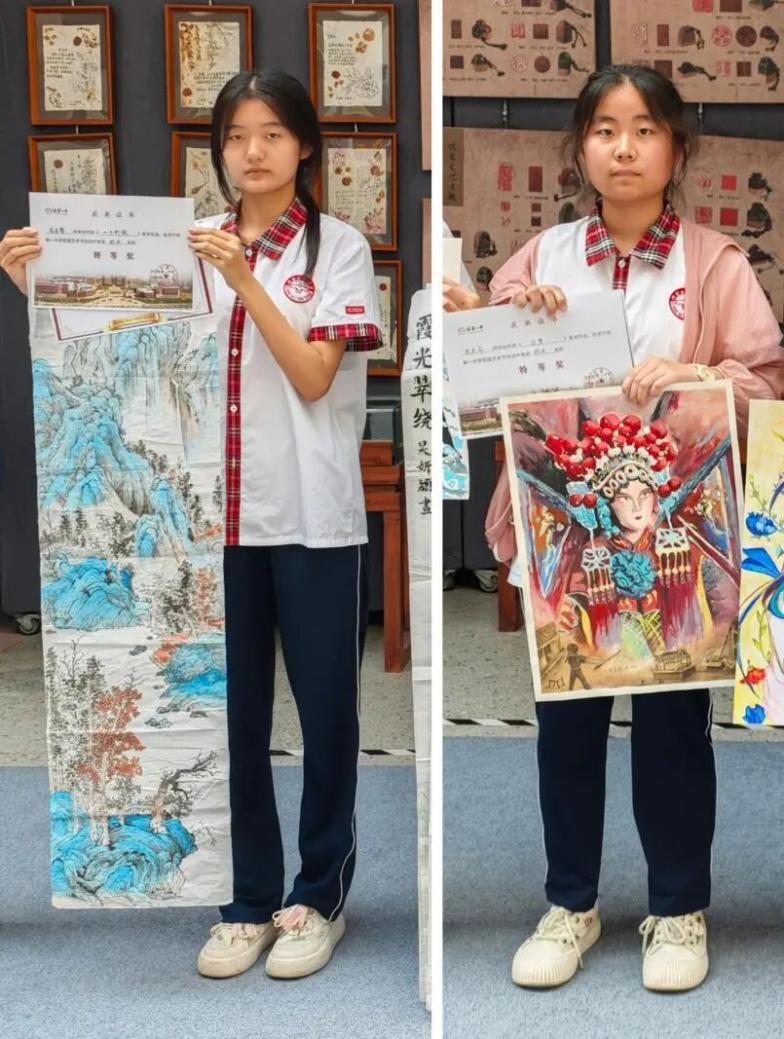 长期以来,学校始终把美育视为素质教育的核心要素,秉持以美育人、以美化人的理念。学校通过开设多样化的艺术课程、定期举办校园艺术节、组建特色艺术社团,为学生搭建了“课堂学习 + 实践展示 + 创新创作”的立体式艺术成长平台,引导学生在艺术探索中提高审美素养、培育人文情怀、激发创新思维。此次八件参赛作品全部荣获一等奖,这不仅是对参赛师生辛勤付出的充分肯定,更是学校长期深耕美育领域、持续完善艺术教育体系所取得成果的集中展现。