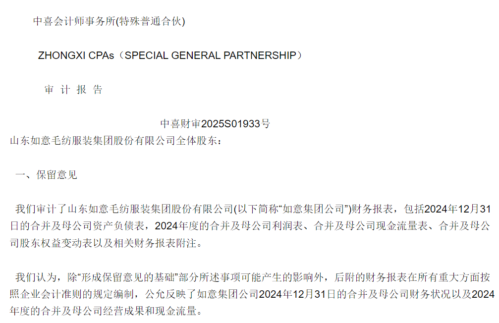 值得关注的是,审计机构对如意集团的财务报告也提出了质疑。