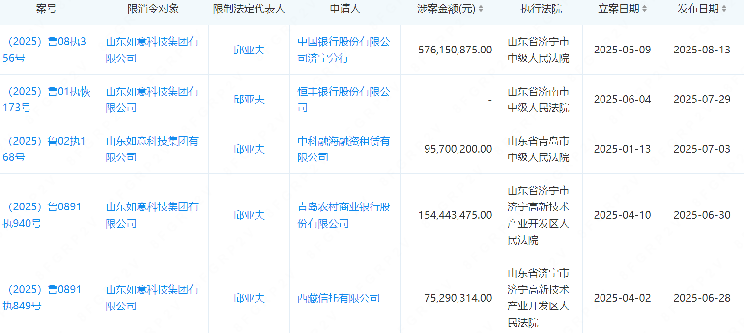 法律风险信息进一步印证了这一判断。据天眼查显示,如意集团在2025年有多起开庭公告,案由多为买卖合同纠纷。而公司控股股东及实际控制人更已被列为失信被执行人和被限制高消费。