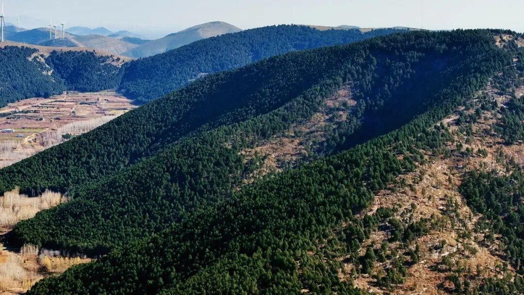 最动人的莫过于冬日的林场。当万物褪去色彩,这里依旧翠绿盎然,侧柏的针叶凝着晨露,在寒风中更显苍劲。阳光穿透枝叶洒下斑驳光影,与远处白马河的粼粼波光相映成趣,山脚下村落的炊烟袅袅升起,构成一幅动静相宜的冬日山居图。