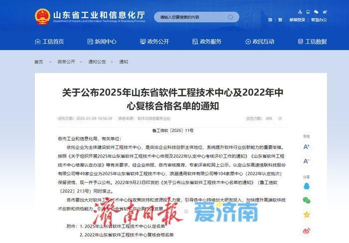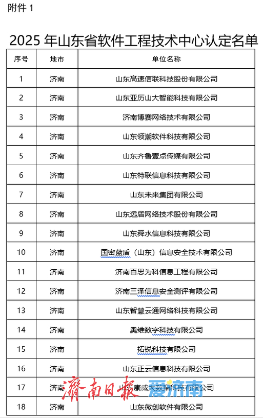 近日,山东省工业和信息化厅发布通知,公布2025年山东省软件工程技术中心名单。记者获悉,山东高速信联科技股份有限公司等49家企业被认定为2025年山东省软件工程技术中心。