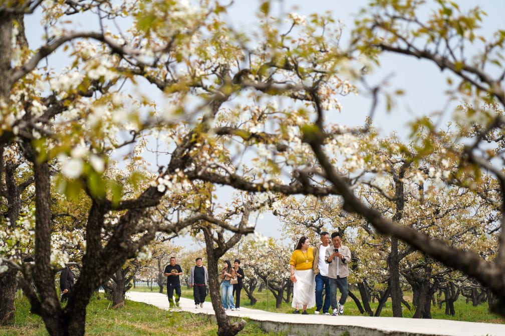 时下,山东省滕州市柴胡店镇近万亩梨园进入盛花期,梨花竞相绽放。