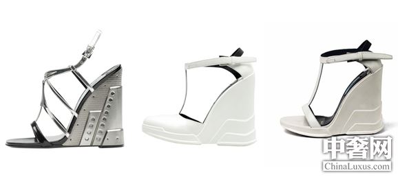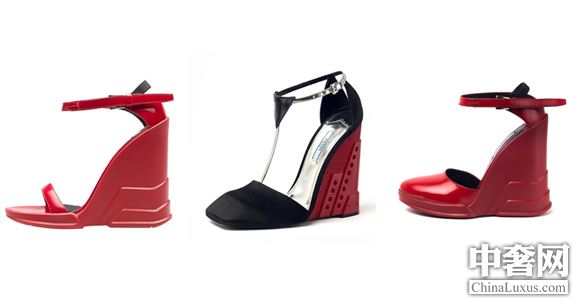 这几年“坡跟鞋”总被时尚达人们归为过时产品,而普拉达(Prada)似乎并不惧怕这个,当然,大牌总有“潮流由我说了算”的气场,近日,普拉达(Prada)2014秋冬全新系列高跟鞋亮相,此系列鞋履以舒适复古的坡跟掳获人心。这一系列产品,设计师加入了冷兵器感的金属元素、螺母嵌孔、铜片叠加等增添女鞋的存在感。