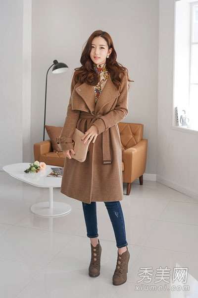 黑色外套带来优雅迷人的气质,中长款式配性感的黑色和短靴,显得美腿修长,格外诱人,把腰带系起来穿,在秋冬季也能穿出妖娆曲线,自然吸引更多异性的眼球。这款外套颜色温馨雅致,配白色长裤和浅灰色高跟鞋,给沉闷的秋日带来一丝清新,一抹亮色,优雅大方的款式加上随意系起来的腰带,看起来优雅迷人。