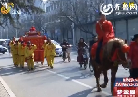 齐鲁网2月21日讯 如今,崇尚低碳环保已经悄然成为一种风气,近日,枣庄台儿庄区一对海归博士后情侣,结婚时,新郎用传统的八抬大轿迎娶新娘,既环保又显洋气。