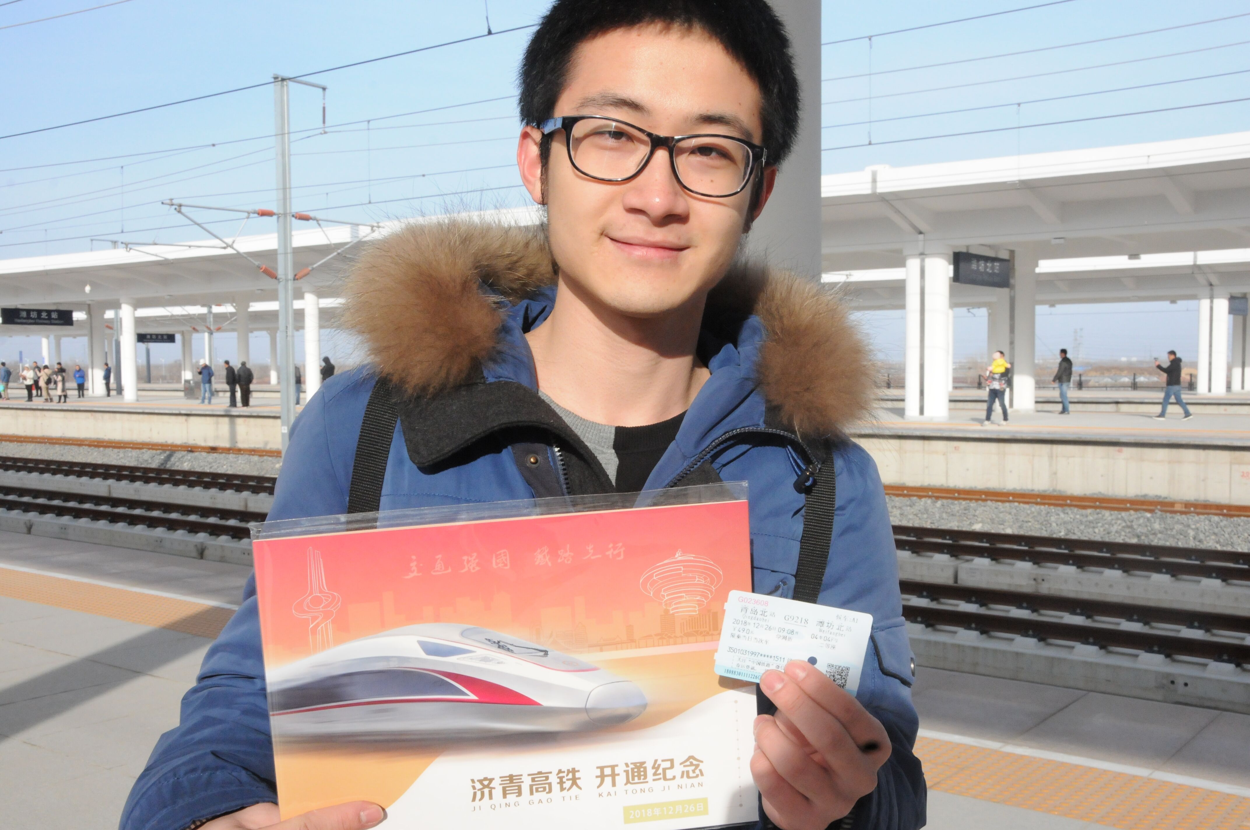 “我特意从青岛北站坐到潍坊北站,就是想亲身感受一下新启用的济青高铁。”小洪是青岛一所大学大四学生,考完研究生后刚好有假期,所以提前购买了G9218次的车票,从青岛北站坐到潍坊北站,接下来,他打算穿过潍坊城区,赶到潍坊火车站,再坐动车回青岛,他的手中还有一本济青高铁的纪念册,他说车上乘客都有,这对于他来说非常有纪念意义。