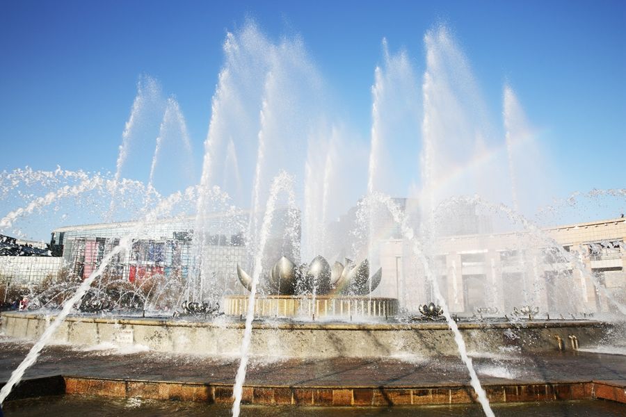 惊艳!济南泉城广场喷泉上空惊现彩虹!
