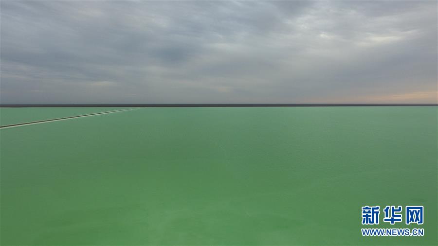 这是从空中俯瞰盐池(8月14日无人机拍摄)。/n/n 新疆罗布泊曾是中国第二大咸水湖,自上世纪70年代干涸后,成为世人皆知的“生命禁区”。不过,就在这片绝地之下,却蕴藏着储量极为丰富的稀缺矿产资源——钾盐。如今,随着当地钾盐资源的开发,地下的天然卤水从泵井抽出来,通过一条条盐水渠汇入一个个盐湖,让罗布泊重现“碧波荡漾”。新华社记者 赵戈 摄