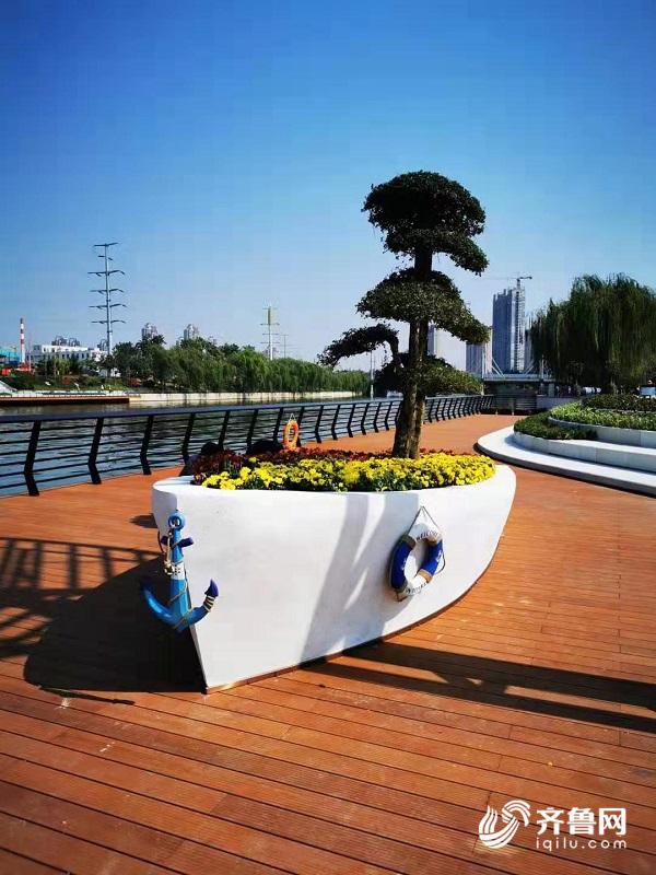 继10月1日济南小清河生态景观带改造提升工程首个风貌带标准段-“静享乐活”向市民开放后,10月10日,第2个风貌带标准段-“古济新貌”南岸也向市民开放,此处河岸景点位于历山北路以东、航运路以西,长约700米。“古济新貌”段南岸开放后,小清河沿岸又增加一休闲娱乐场所。