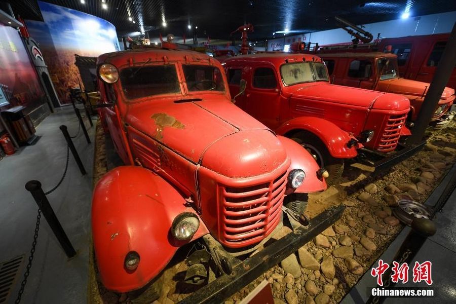 6月7日,山西太原,太原老车文化博物馆内停放着的解放牌消防车。目前该馆共有来自10余个国家的各类老式汽车350辆,以及老式拖拉机、摩托车、重型机械等,其中9成以上的老汽车仍旧可以发动,各个年代的老式汽车令观众大开眼界。