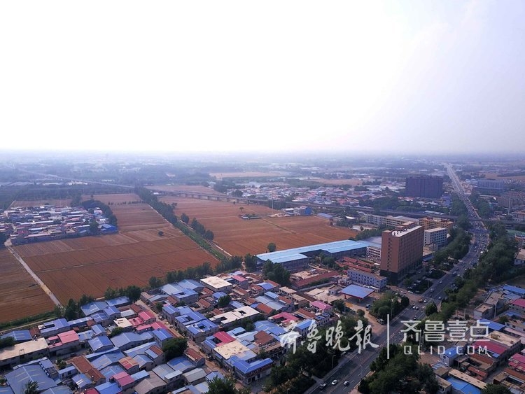 10日,雨后的济南空气湿润,黄河北的大桥镇附近大片农田刚收割完毕景色壮观。