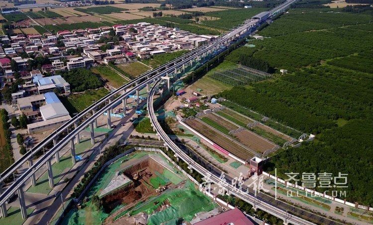 6月16日,济南西郊轨交R1线与范村车辆基地连接处,正线和基地之间通过这两条人字形的高架连接线相连接。 范村车辆基地在赵家营站东侧,基地提供车辆夜间的维修保养和存放,每天早晚车辆都要经过这两条线进出基地。目前正线和基地的设施都在施工中,大批工程人员为明年的R1线试通车奋力拼搏。