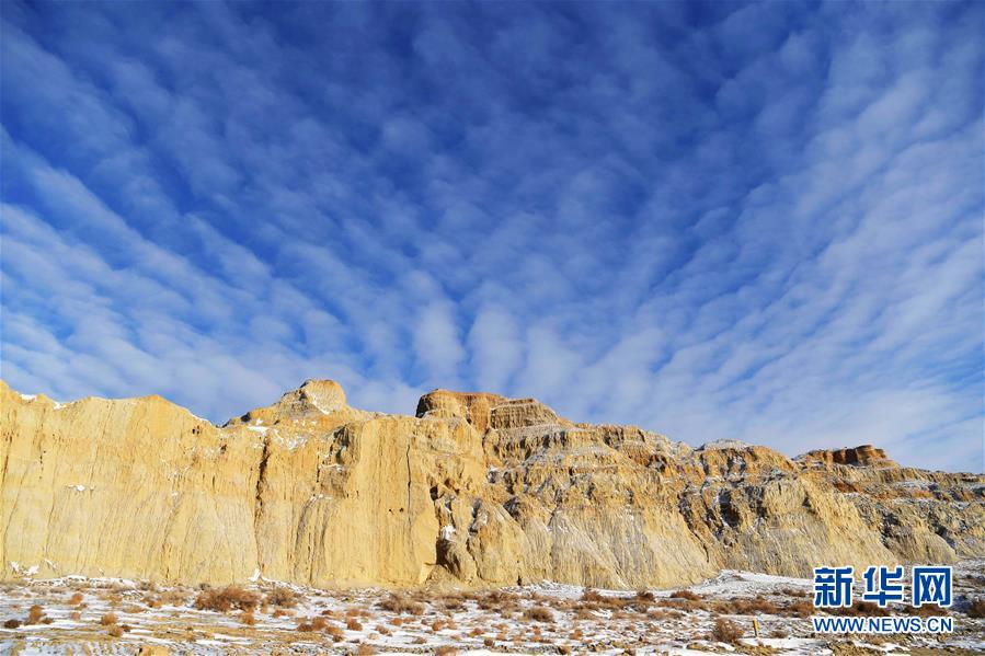 11月26日拍摄的新疆福海县乌伦古湖海上魔鬼城景区美景。 福海县乌伦古湖海上魔鬼城景区位于新疆阿勒泰地区福海县吉力湖东岸,有着独特的雅丹地貌和水域景观,是当地著名的旅游胜地。 新华社记者 沙达提 摄/n/n