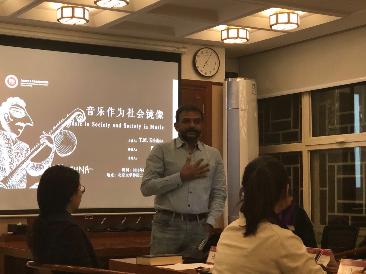 卡纳提克音乐家克里什那在讲座现场。