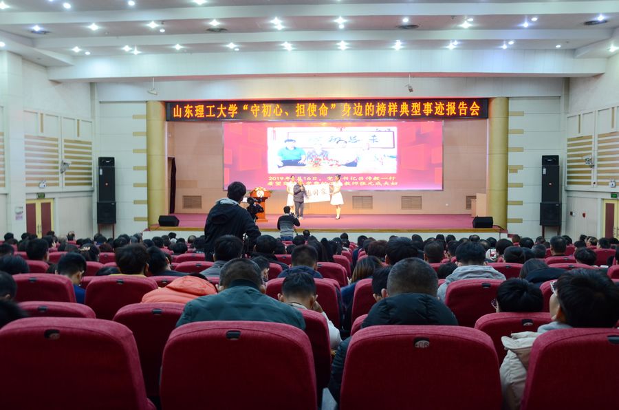冬日时节寒意料峭,但此时的山东理工大学学术报告厅内却是情暖意浓。“守初心、担使命”身边的榜样典型事迹报告会在这里举行。一个个令人肃然起敬的伟岸身影、一段段让人难忘的奋斗故事,在瑟瑟冬日幻化为一种光芒、一种力量,有力助推学校主题教育深入人心、取得实效。