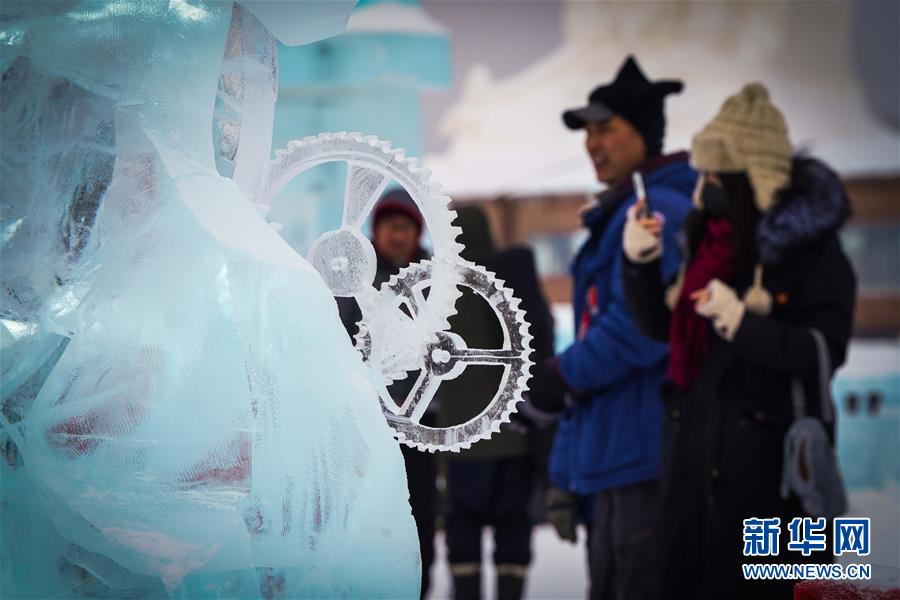 这是获得一等奖的俄罗斯雅库茨克队冰雕作品《时间的主人》(局部)(1月8日摄)。/n/n1月8日,在哈尔滨冰雪大世界园区进行的第三十四届中国哈尔滨国际冰雕比赛落下帷幕。俄罗斯雅库茨克队冰雕作品《时间的主人》获得一等奖。/n/n新华社记者 王松 摄