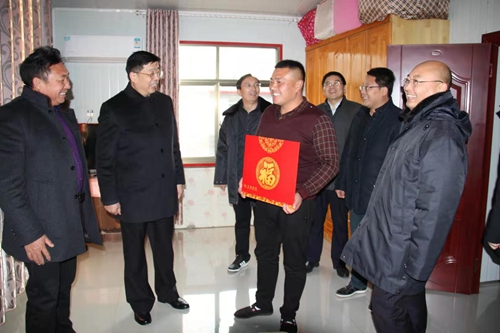 赵秀军一行首先来到正在康复疗养中的全国劳动模范、渭河村党支部书记村民委员会主任孙茂东家,送去交通银行新春祝福,并详细了解孙茂东同志治疗康复情况,叮嘱他精心养病、尽快康复,带领渭河村民在乡村振兴大潮中再创辉煌。孙茂东同志感谢赵秀军副行长一行,并表示省委省政府让我们两家结对,我们一定把握这一历史机遇,有交行这一坚强后盾,渭河有信心在乡村振兴中继续走在前、做表率。