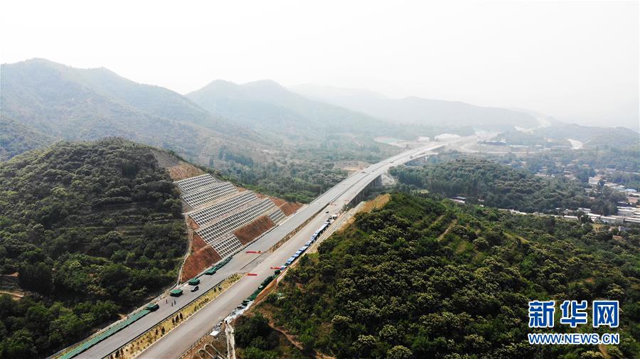 6月6日拍摄的施工中的济泰高速(无人机照片)。 济南至泰安高速公路是山东省高速公路规划网的“纵六”并行线,目前该工程进入最后冲刺阶段,各施工单位正加紧施工,确保2020年年内建成通车。高速建成后,从济南至泰安只需半小时左右。 新华社记者 王凯 摄