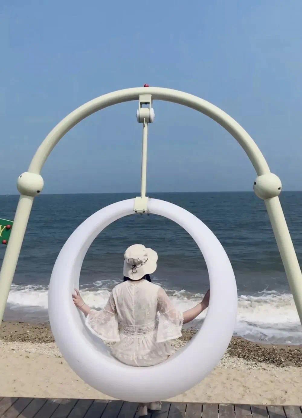 坐在秋千上,