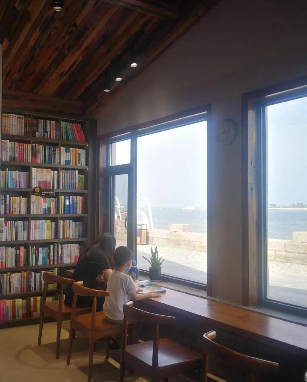 在借阅自修区,海风和诗,夏日阳光透过大玻璃窗流淌进书本中。翻开一本心仪已久的著作,沉浸其中,时光悄然间,便慢了下来。累了,放眼窗外,海风裹挟着浪花拍打着堤石,在这静谧的空间里将内心全部放空,然后,再背负行囊,继续下一段旅程。