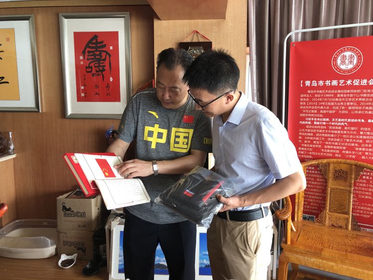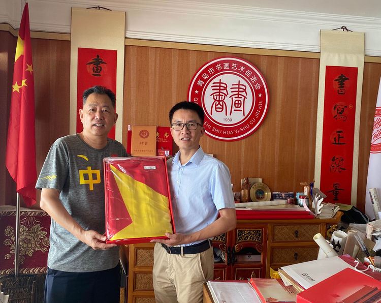 青岛市书画艺术促进会倪汉婴主席授旗后表示:“12月27日是青岛市书画艺术促进会成立的日子,江秀波秘书长由京将带有12月27日的国旗赠送给促进会,具有特殊的纪念意义,是对青岛市书画艺术促进会的鼓励和支持。” 中国红色文化研究会江秀波秘书长同时高度评价了双方合作对于传承红色基因,弘扬传统国学起到的积极作用,并对今后双方合作发展前景给予良好祝愿和期盼。