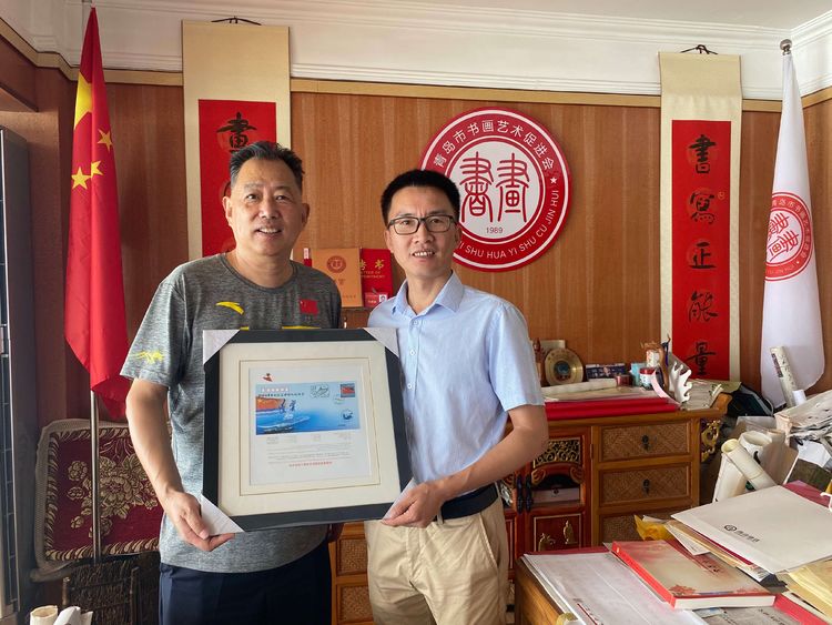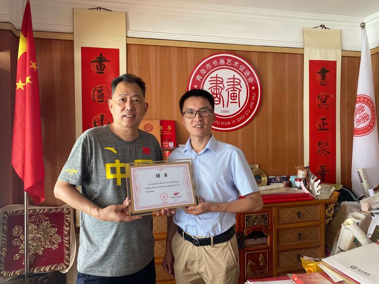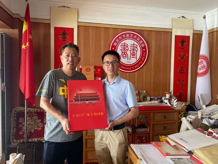 2020年8月10日上午10点,由中国红色文化研究会专赴向青岛市书画艺术促进会授予促进会创会日(12月27)的天安门广场专用国旗仪式在青岛举行,授旗仪式由王波副主席兼秘书长主持并取得圆满成功。