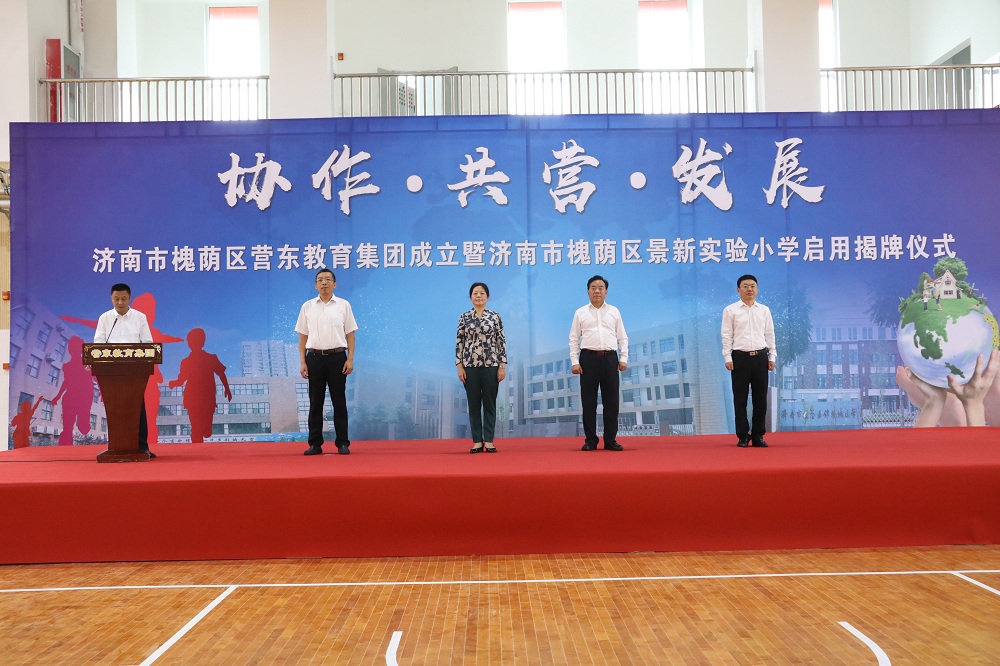 槐荫区委书记国承彦、济南市教育局局长王品木共同为营东教育集团和景新实验小学启用揭牌,与全体与会来宾共同见证了这一难忘的历史时刻。