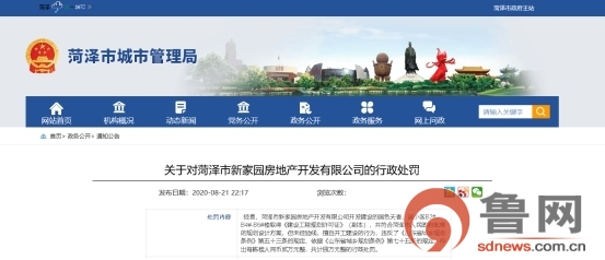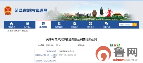 原标题:菏泽润泽置业、菏泽新家园房地产擅自开工建设被罚