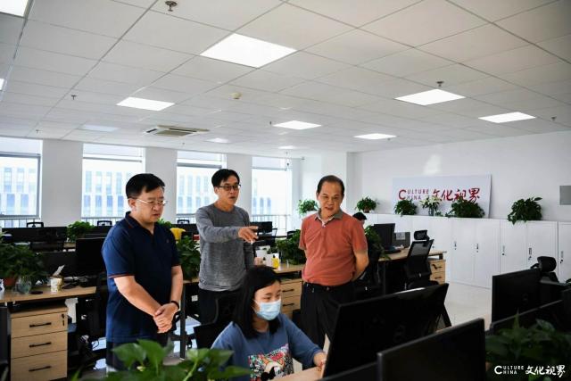 老朋友相见总是格外热情,王慰平先生与焦书晖先生还未进门,梁洪文董事长已经急急地起身迎接,一碰面三人便大笑着,热情地握手寒暄。老朋友们即便是许久不见,一见面也有说不完的话,话匣子一打开,便再也不停下来。众人一边参观文化视界网,一边热烈地讨论着。新媒体的发展、传统媒体的现状以及文化视界网的未来走向,这是老报人们离不开的话题。