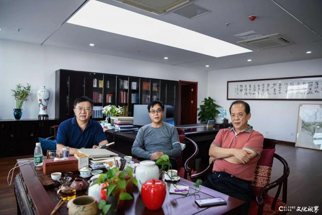 文化视界网报道 9月18日下午,钱江晚报原总经理、浙报传媒股份有限公司监事会原主席王慰平与大河报原总经理、河南省文化产业投资有限公司常务副总经理、著名画家、河南省美协理事、河南省中国画学会副会长焦书晖参访文化视界网。文化视界网董事长梁洪文热情接待了两位老友。