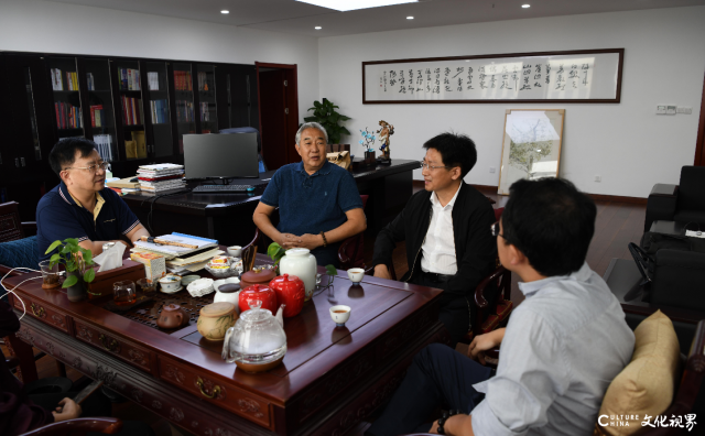 9月29日下午,青年书画家、中国书法家协会会员、山东省书协行业建设委员会副秘书长、济南青年书协顾问王奇嵩和青年书画家、中国书法家协会会员、山东省青年书协理事、济南市青年书协副主席于新澎以及三益书屋艺术馆馆长左书佩一行参访文化视界网。