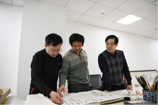 11月30日下午,著名书画家、中国美协会员、中国书协会员、中国人民大学艺术学院书画创作研修班导师、山东省教育书协副主席、山东管理学院艺术学院原院长戴丕昌教授和著名书画家、中国美协会员、中国国家画院张志民工作室画家、曲师大特聘教授、民盟济南画院副院长、济南市文化馆专职画家赵德勋以及山东体育学院教授崔斌等一行走进文化视界。