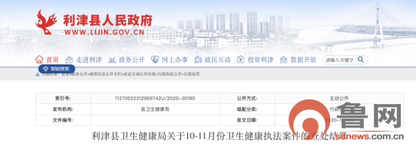 鲁网12月7日讯 近日,东营市利津县卫生健康局发布10-11月份卫生健康执法案件查处结果,利津县第二人民医院、利津县明集卫生院以及利津街道西街村纪海青被依法查处。