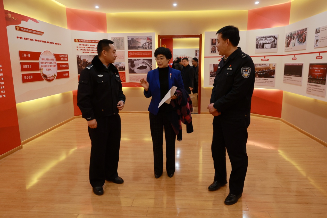 潘旭光向慰问组一行汇报了长清交警大队2020年的工作亮点,慰问组参观了交警大队党员政治生活中心。梁艳玲感谢一年来长清大队始终把对党忠诚放在首位,把守护平安放在肩上,用忠诚担当诠释“人民至上、生命至上”的情怀,向党和人民交上了一份满意的答卷。她要求,交警大队要牢固树立为民服务的宗旨意识,关注困难警员的生活情况,经常性开展入户走访工作,把更多的关心、关爱送给他们。她强调,两会将近,加之受疫情影响异地过年人员增多,要提高政治站位,科学组织勤务,完善应急处置机制,精准研判疫情带来的影响,确保市民度过一个欢乐祥和的春节。
