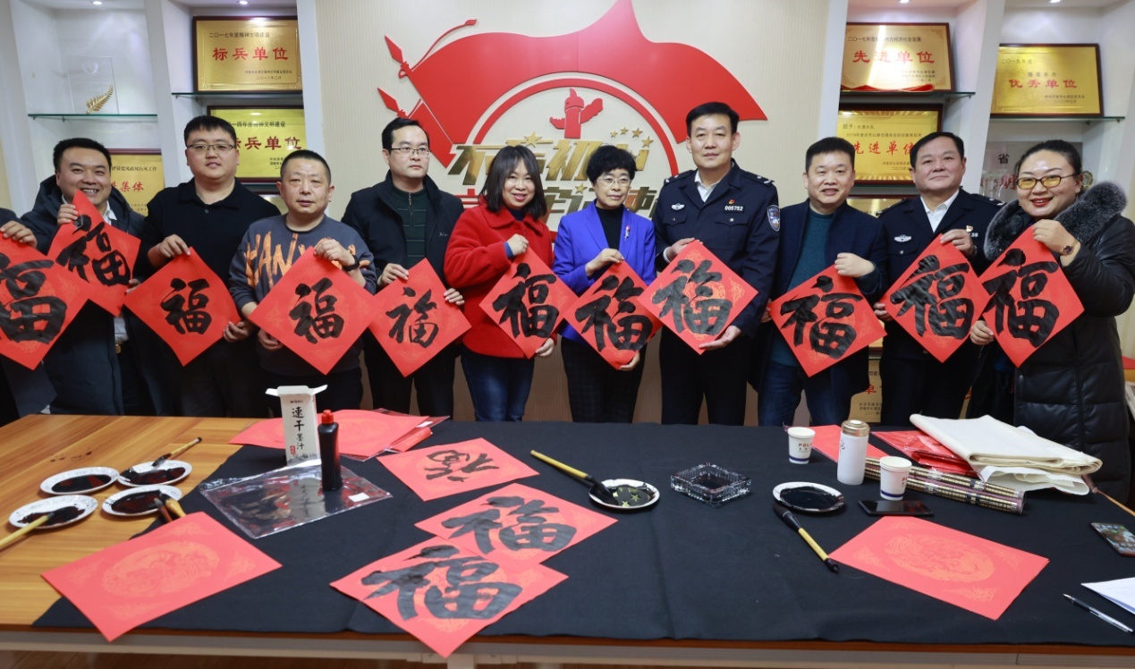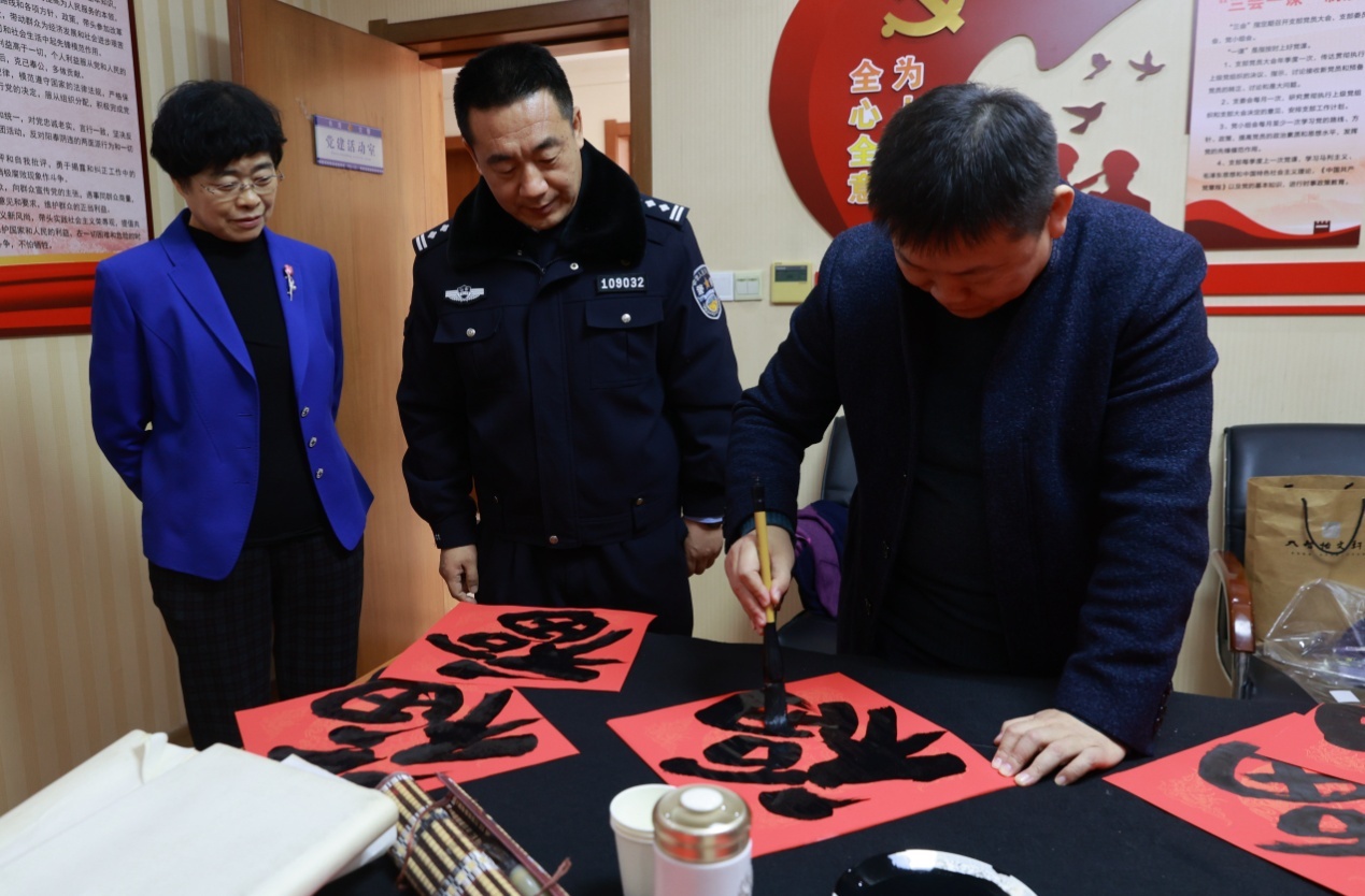 书画创作现场,书画家们饱含浓浓深情,挥毫泼墨,将真诚的祝福付诸笔端,一副副喜庆的春联、一张张吉祥的“福”字,表达着长清新的社会阶层人士对交警日夜值守的衷心感谢和对祖国繁荣富强、人民幸福安康的美好祝愿,呈现出浓浓的“年”味,为即将到来的新春佳节增添了喜庆祥和的节日气氛。