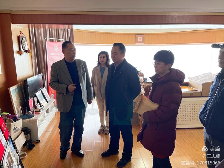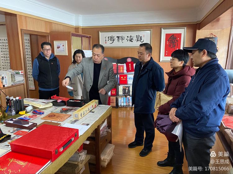 2021年2月25日,青岛市文联党组成员、副主席徐健,市文联组联部部长王敏,市文联组联部三级调研员刘静平一行冒雨到青岛市书画艺术促进会以座谈交流的形式进行视察调研。青岛市书画艺术促进会倪汉婴主席,刘晶副主席,副主席兼秘书长王波,产业委员会主任李海平,副秘书长王思成陪同参加。
