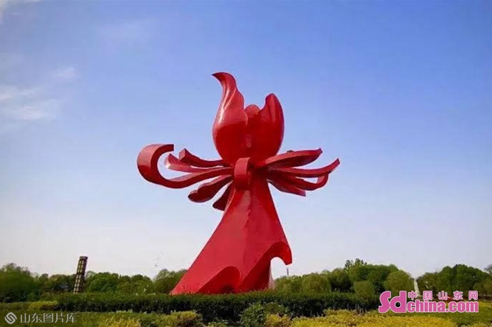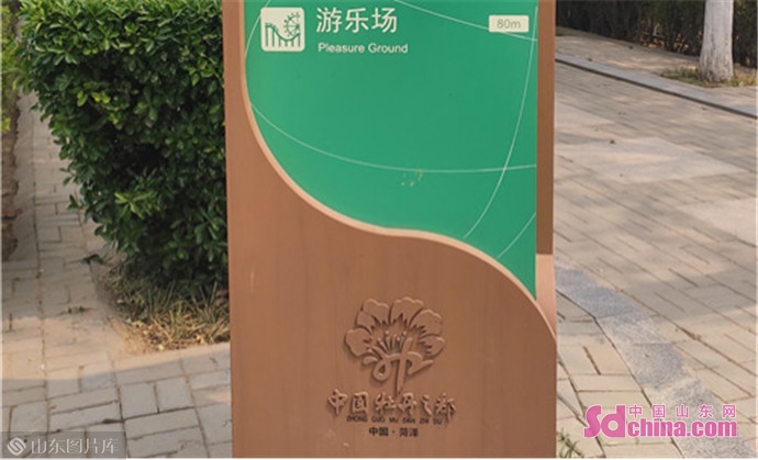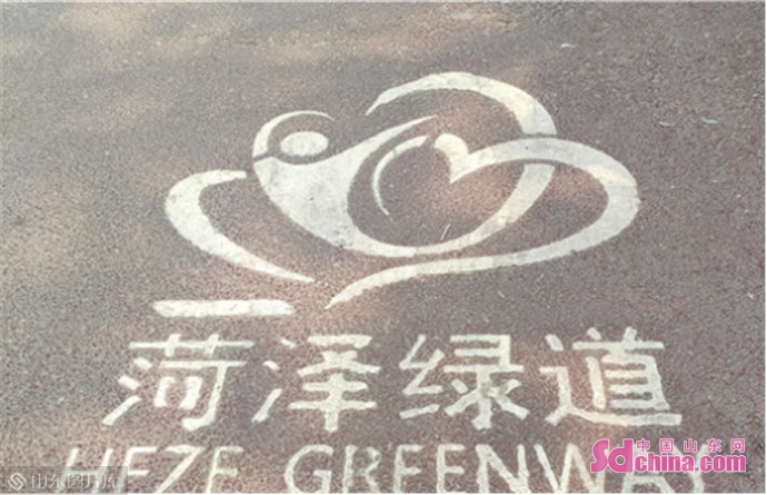 在天香公园内以牡丹花为主题、融合其他元素设计形成的菏泽绿道向前延伸而去,标识牌也印上了牡丹的标志,都成为了菏泽一道道靓丽的风景线。