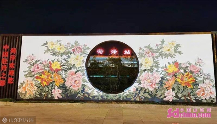 在菏泽站,巨大的牡丹屏风与菏泽站三个字相互衬托,好像在给外地游客诉说着:中国牡丹之都,菏泽欢迎您。
