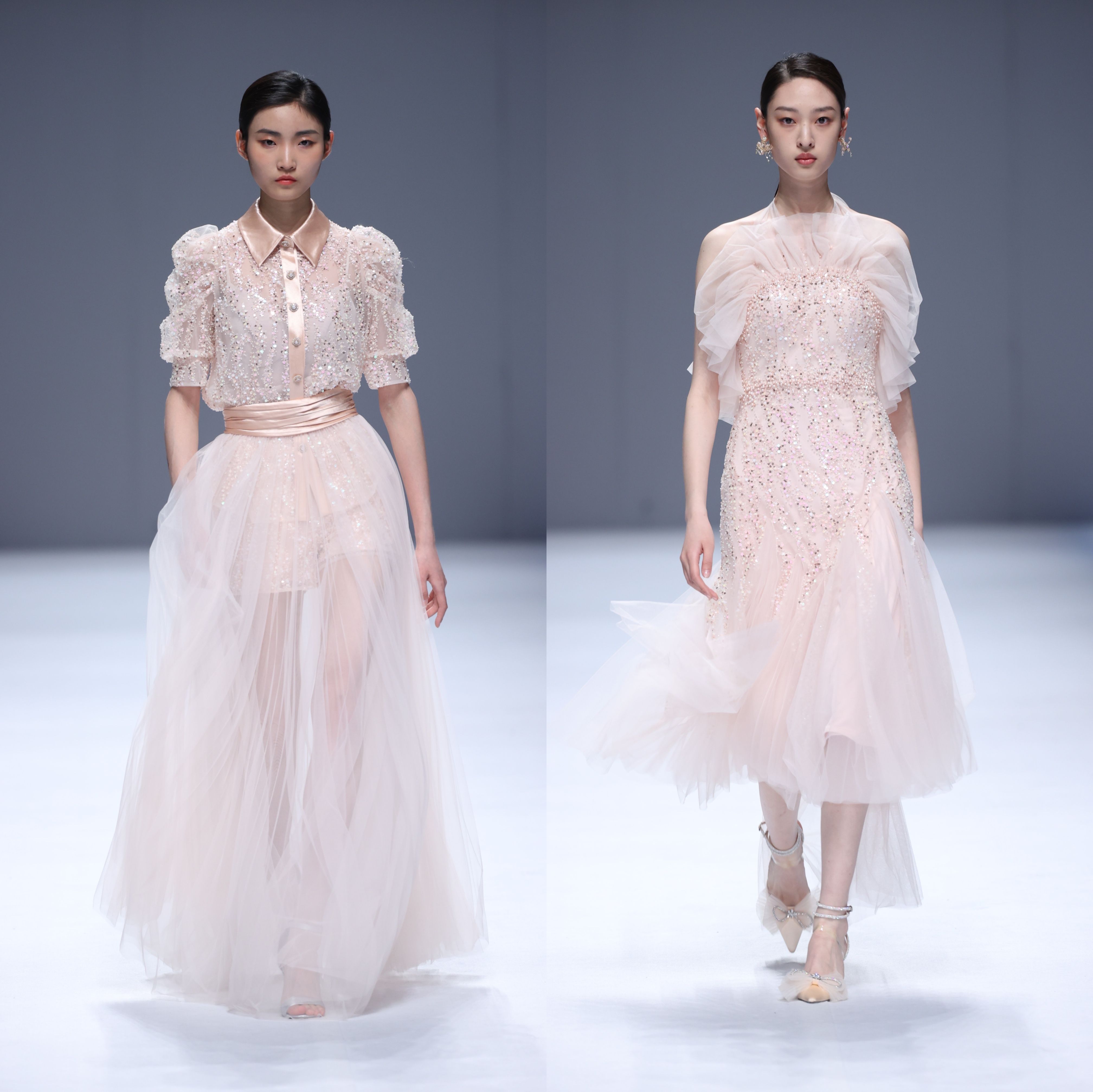 本次发布会共呈现41套服装造型,素雅的配色及浪漫唯美的风格是当天秀场上的亮点,而垂坠飘逸又富有金属光泽的中国传统真丝面料则承载了设计师的巧思。