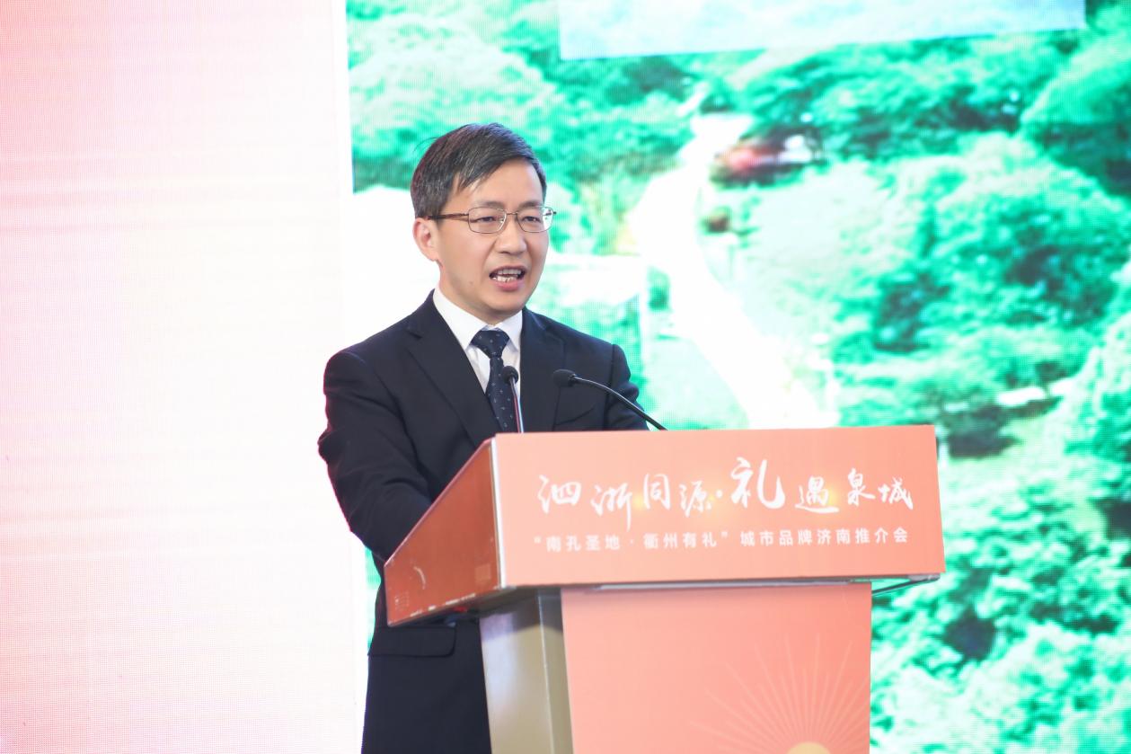 济南市委常委、宣传部部长杨峰致辞,向远道而来的朋友表示热烈的欢迎,济南与衢州情感相亲,千年的孔学儒风将两市紧紧相连。两地山水相映,禀赋相近,天然的区位优势撬动了两市经济社会高质量发展,相信通过活动将促进双方在经济、文化、旅游等各领域全方位交流和合作。