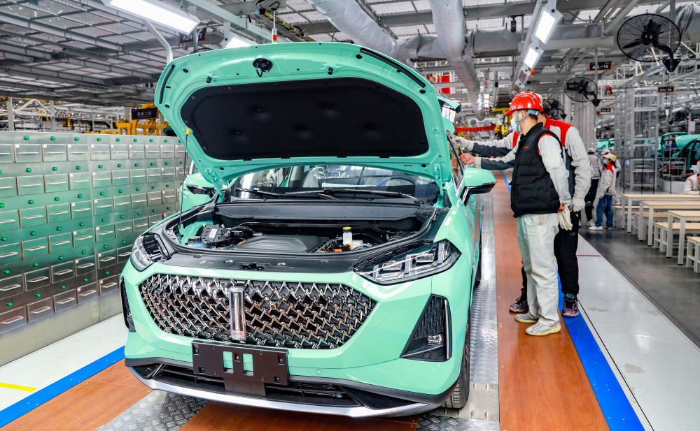 4月2日,在位于日照经开区的长城日照威奕汽车项目总装车间内,工人在进行装配作业。新华社记者 范长国 摄